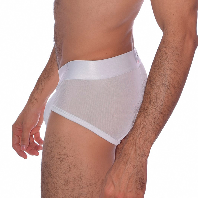 Si eres mas arriesgado este brief de malla color blanco, con forro delantero y elásticos y sesgos blanco es para ti. Este interior cuenta con una copa con realce delantero, que hará que todo este en su sitio y se vea como siempre has querido, ademas cuenta con una abertura superior funcional. Úsalo y te hará lucir seguro y muy cómodo.
