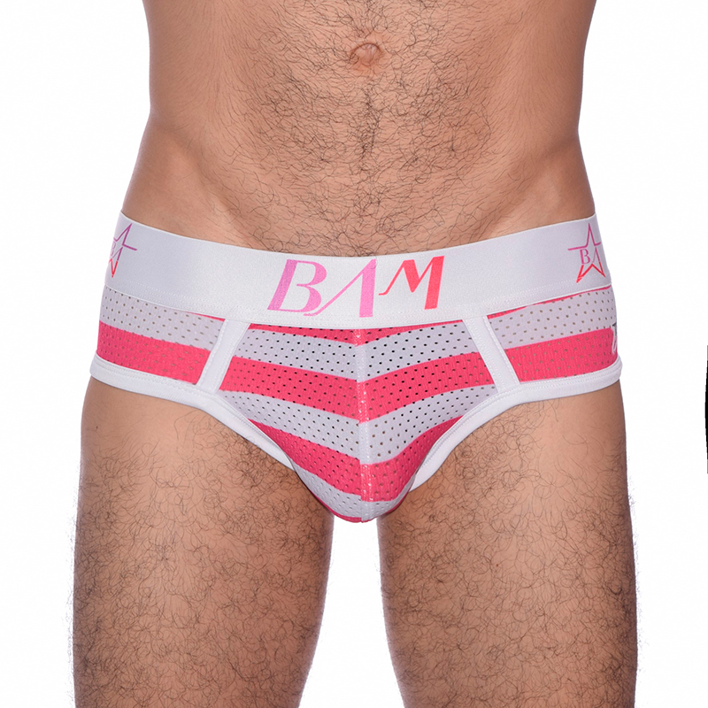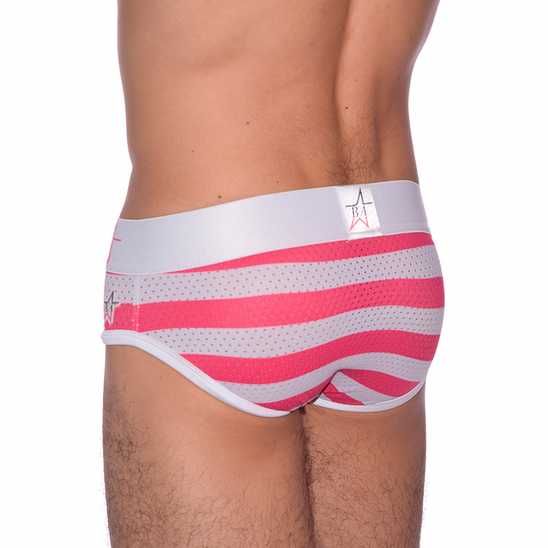 Si eres mas arriesgado este brief de malla de rayas rojas y elasticos y sesgos blanco es para ti. Este interior cuenta con una copa con realce delantero, que hará que todo este en su sitio y se vea como siempre has querido, ademas cuenta con una abertura superior funcional. Úsalo y te hará lucir seguro y muy cómodo.