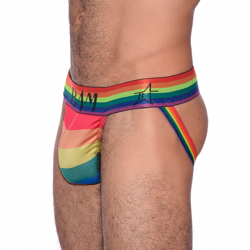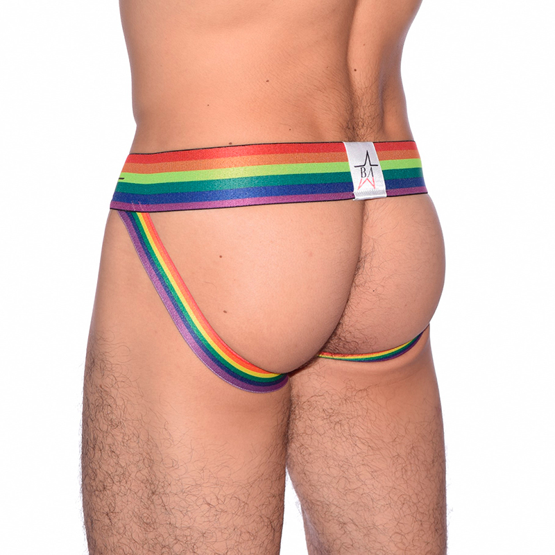 Este atrevido jockstrap con estampado y elastico con la bandera Pride tiene un ajuste perfecto, cuenta con una copa con realce delantero, que hara que todo este en su sitio y se vea como siempre has querido, sus elasticos levantan y realzan tus gluteos.